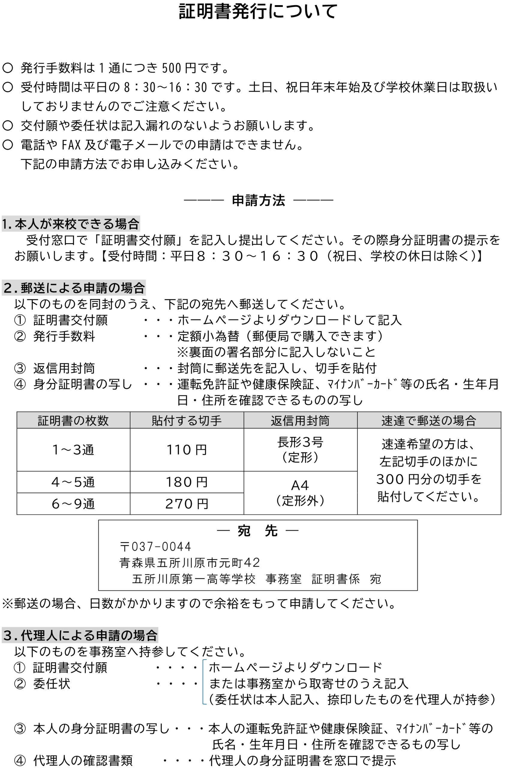 学校法人舘田学園 五所川原第一高等学校 証明事務取扱規定