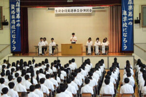 令和7年度 生徒会役員選挙立会演説会が行われました。 日時:令和7年9月18日(木)14:20~ 場所:本校体育館 五所 …